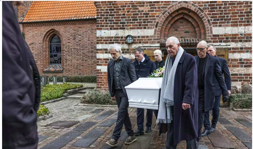 Sorgen var stor og tydelig, da familien i Gentofte Kirke sagde et endeligt farvel til deres elskede.