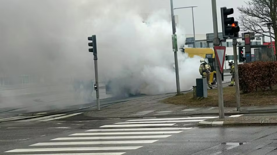 Billeder fra stedet viser voldsomme røgskyer fra elbussen.