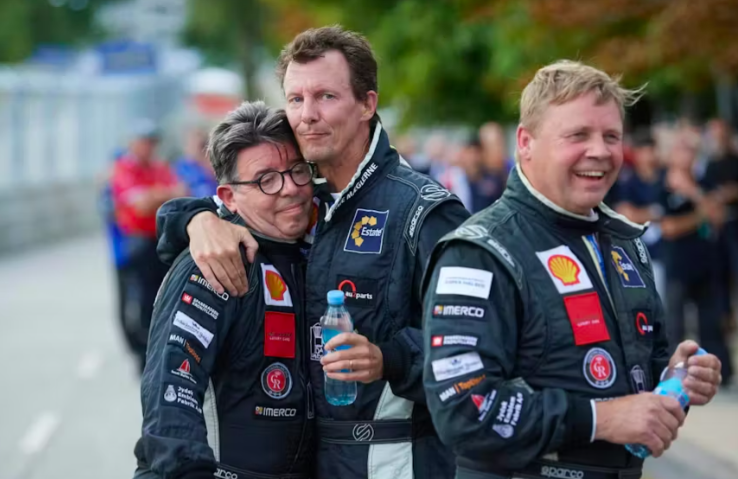 På det medfølgende billeder sidder den danske prins og vennerne og storsmiler, mens de underskriver kontrakten med racerholdet.