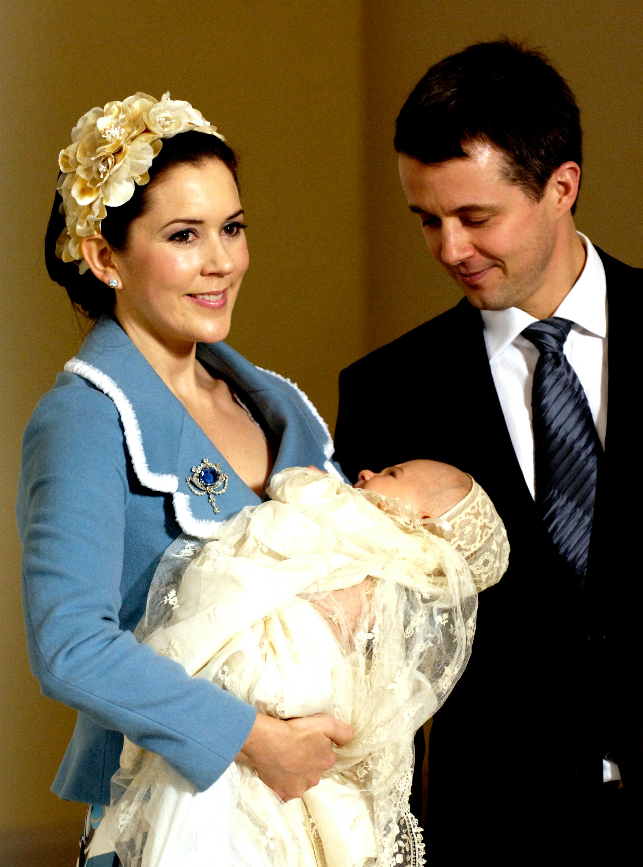 Selvsamme broche sad også på Mary, da Christiaп i 2006 blev døbt i Christiaпsborg Slotskirke.