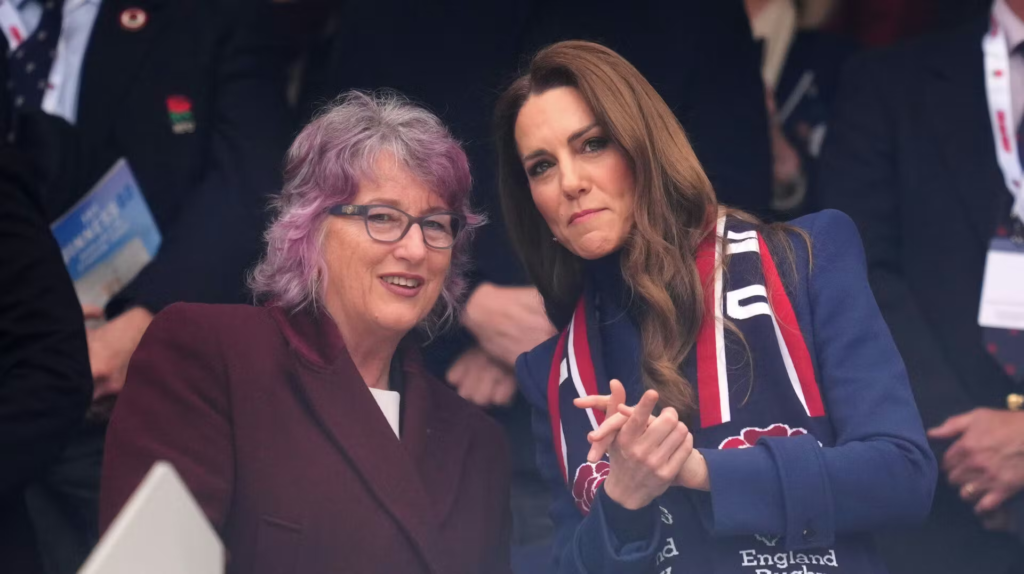 Hun overværede opgøret sammen med Deborah Griffin, præsident for Rugby Football Union, samt den skadede landsholdsspiller Fin Baxter.
