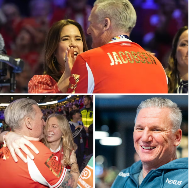 Den 54-årige landstræner stod nemlig også klar til at uddele kram til spillernes nærmeste, heriblandt Mathias Gidsels kæreste Katrine.